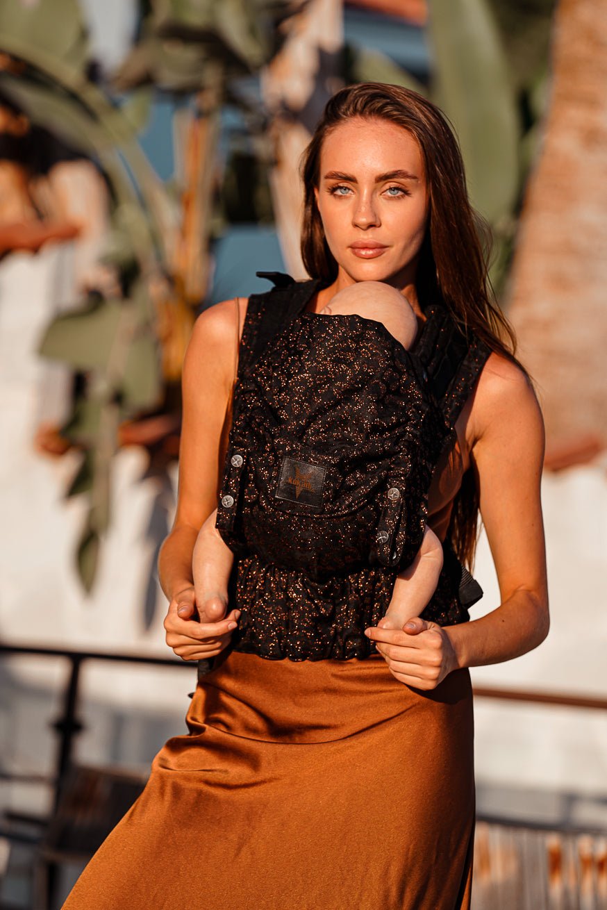 Der Flip X in Safari Shine ist für Eltern gemacht, die Tragen nicht nur funktional sehen, sondern als echtes Herzensband.