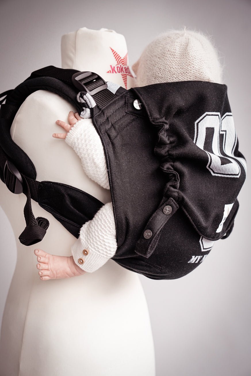 O transportador de bebê Leo Luan vem em um mega visual esportivo. Esse design exclusivo foi criado em cooperação com o influenciador Fiona (Instagram: @fionaerdmann).