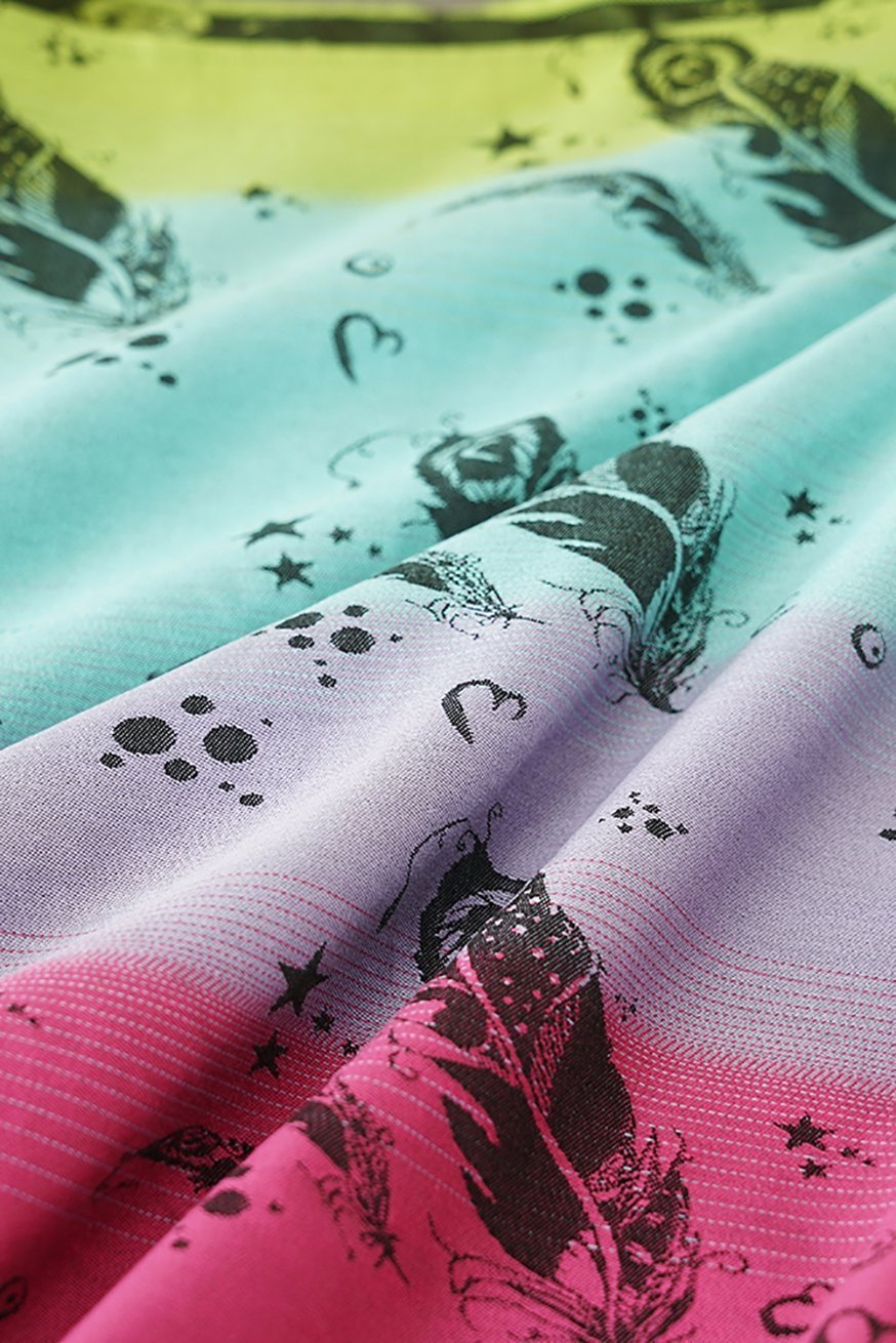 Nosso Wrapstar combina o estilingue e o portador de bebê: na área do quadril, está preso com uma fivela como uma maca, mas é amarrada com tecido ao redor dos ombros como uma funda. Assim, nosso Wrapstar é particularmente popular entre os pais que gostam de ter mais design de tecido, mas não querem fazer sem praticidade.