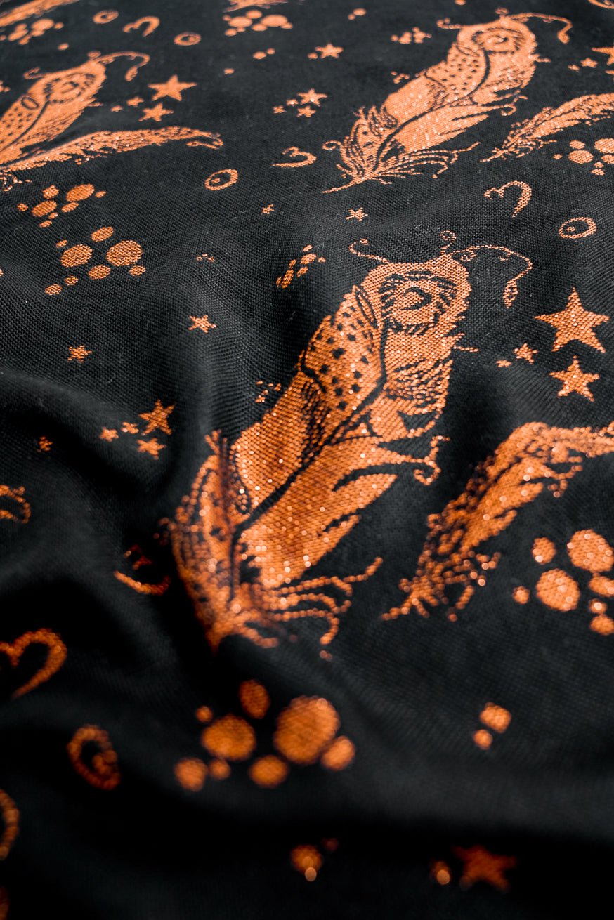 Mit dieser Edlen Trage ist man der Hingucker für alle. Auf der Kokadi Bilder sieht die Trage schon sehr schön aus . In Real hat sie mich dann komplett überzeugt . Trotzdem des glitzer Anteils ist sie kuckelweich und trägt sich sehr bequem.