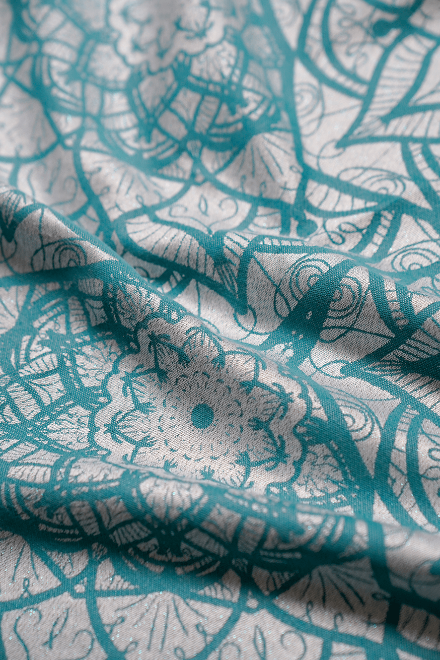 Lilenia Jonathan ist wie gemacht für Sommerabenteuer. Türkisfarbenes Licht, filigrane Mandalas, weiche Fasern, die kühlen und umarmen. Die Stoffqualität aus Bambus-Viskose, Bio-Baumwolle und minimalem Polyesteranteil sorgt für Atmungsaktivität, Leichtigkeit und Stabilität in einem - mit einem Hauch von Glitzer!