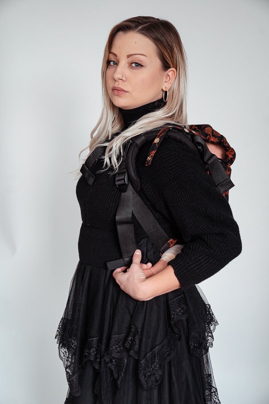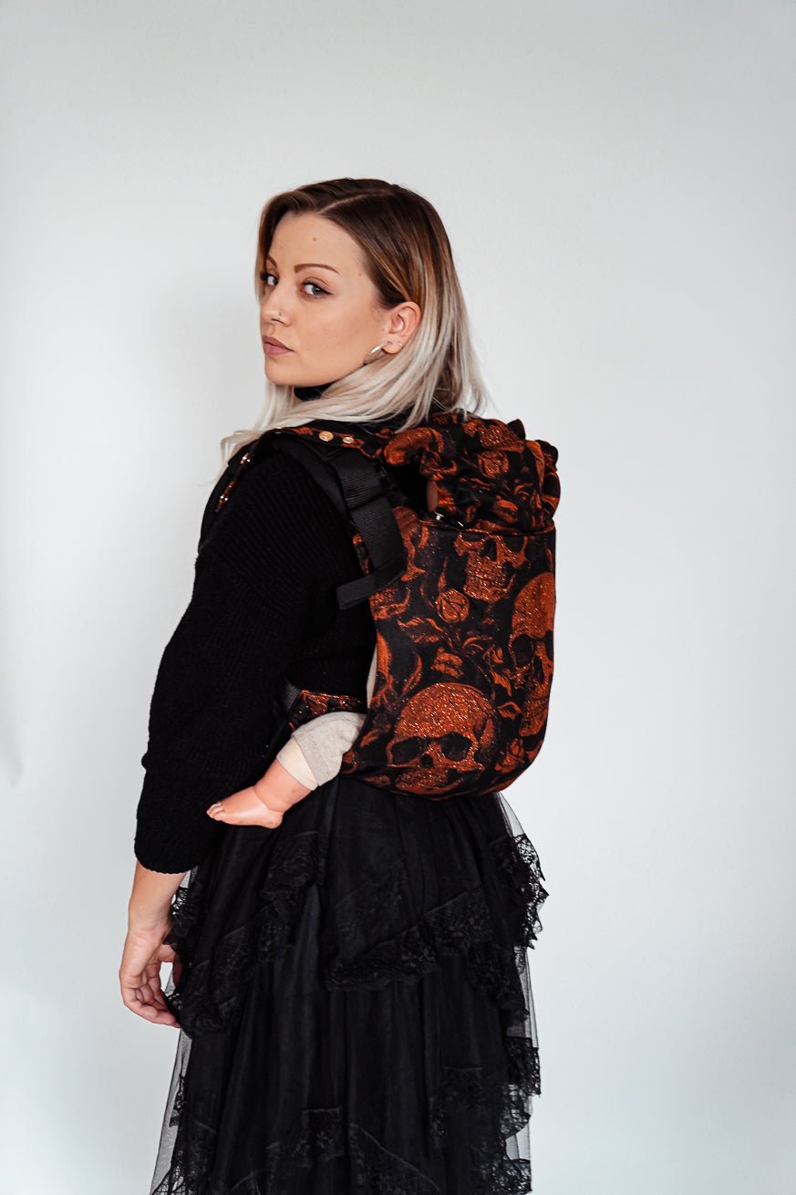 Der KOKADI Onbu Skulls x Florian ist gemacht für Eltern, die Freiheit lieben und trotzdem Nähe suchen. Sein tiefschwarzer Stoff, durchzogen von kupferfarben schimmernden Totenköpfen, erzählt von Stärke, Stil und Rebellion. Skulls x Florian ist kein Design für die Masse – es ist Ausdruck von Persönlichkeit, von Haltung, von dem Mut, anders zu sein.