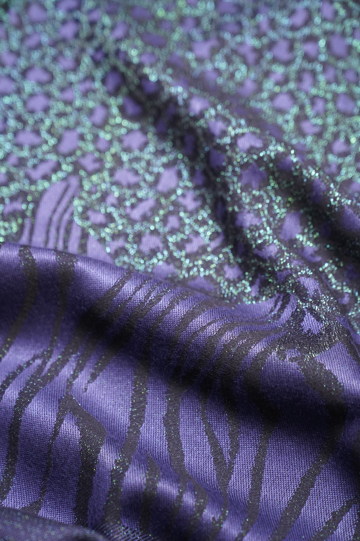 Das Zusammenspiel der Fasern macht den Unterschied: Die Bambus-Viskose fließt wie Seide, wirkt kühlend und weich, während die Bio-Baumwolle Stabilität schenkt. Zusammen entsteht ein Stoff, der leicht, tragstark und temperaturausgleichend ist – ideal für lange Tragezeiten. Der Glitzer ist so fein eingearbeitet, dass er weder kratzt noch beschwert, sondern nur ein stilles Funkeln mitbringt.