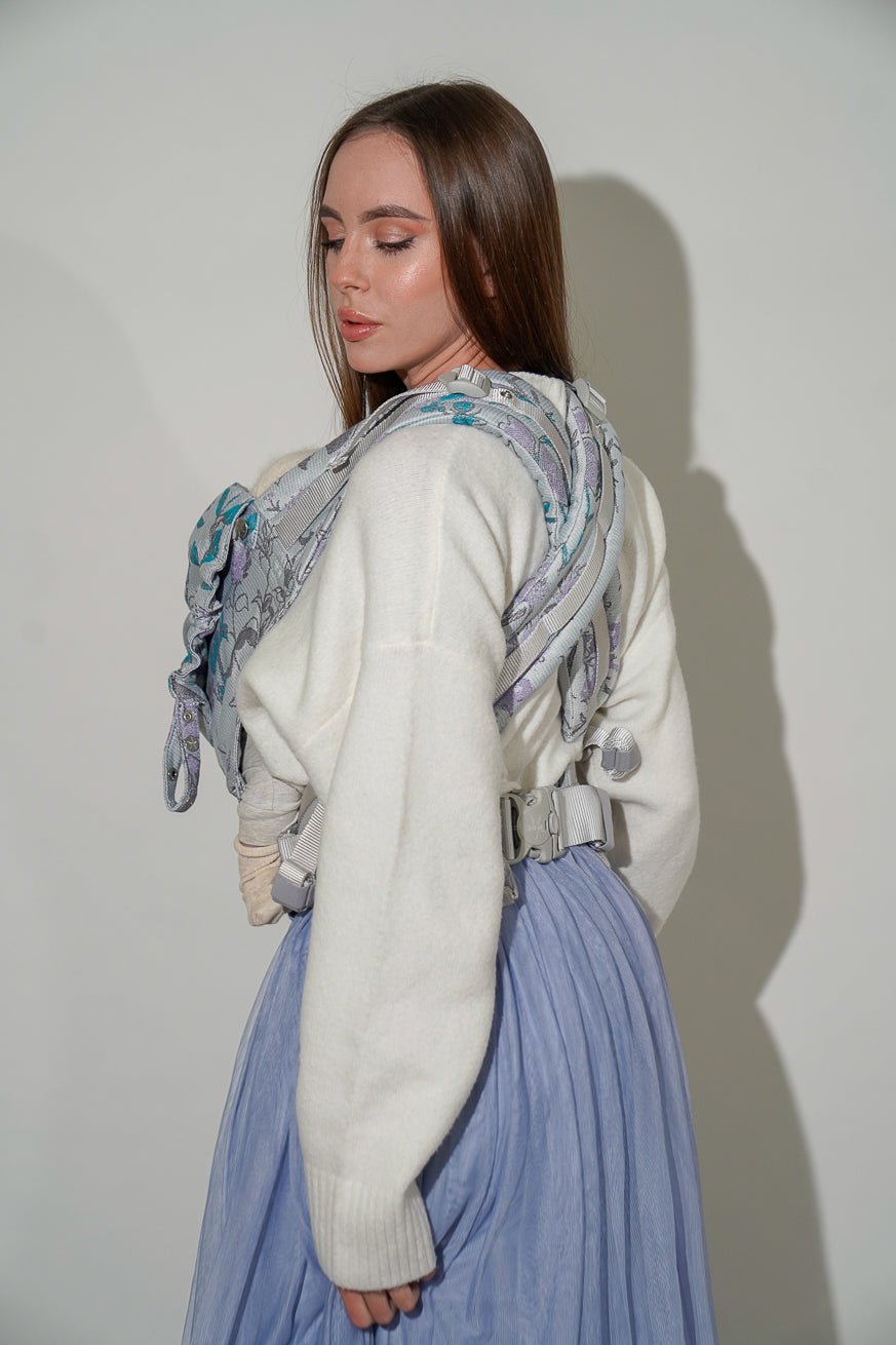 Die „Fliedertraum“-Edition des Kokadi Flip X kombiniert edle Ästhetik mit praktischen Details. Der atmungsaktive Stoff mit fliederfarbenem Blumenmuster und glitzernden Highlights verleiht diesem Design eine unvergleichliche Eleganz. Die extra breite Stegverstellung und die ergonomische Passform sorgen für optimale Unterstützung von Geburt bis ins Kleinkindalter. Die weiche Polsterung der Schultergurte und der Hüftgurt garantieren maximalen Tragekomfort – auch bei längeren Spaziergängen. Mit dem Flip X fühlst du dich jederzeit an den Zauber besonderer Momente erinnert.