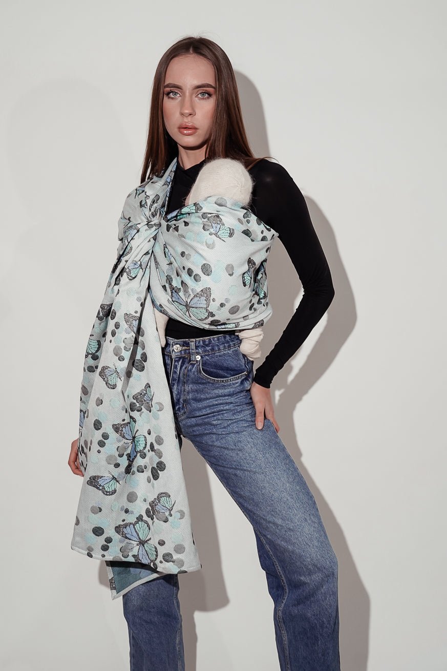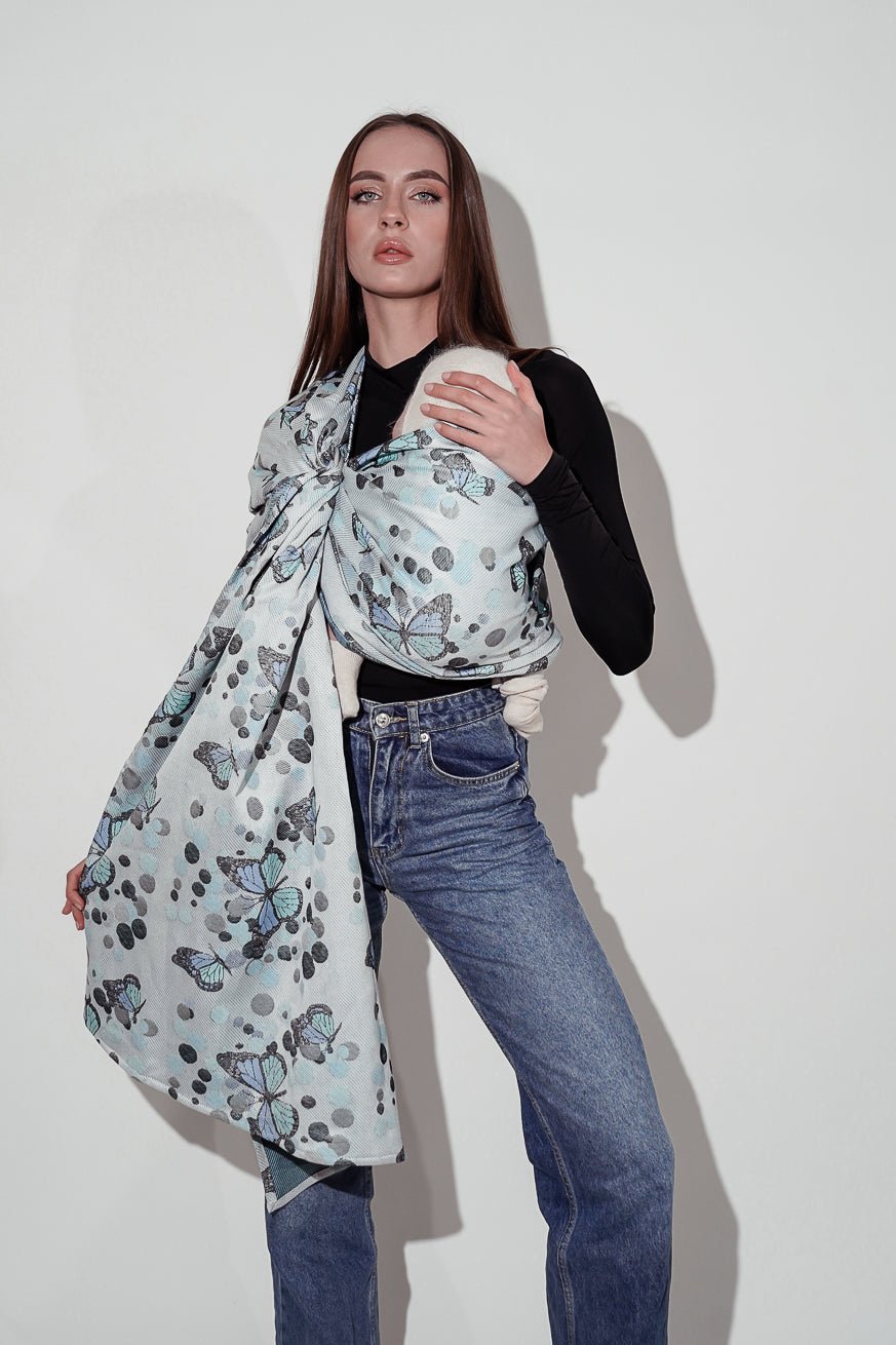 Entdecke die zauberhafte Welt von Mariposa Marbella – unserer limitierten Babytrage in Blau-Türkis auf zartem Off-White mit Schmetterlingsdesign. Ein echter Blickfang und das IT-Piece der Saison.
