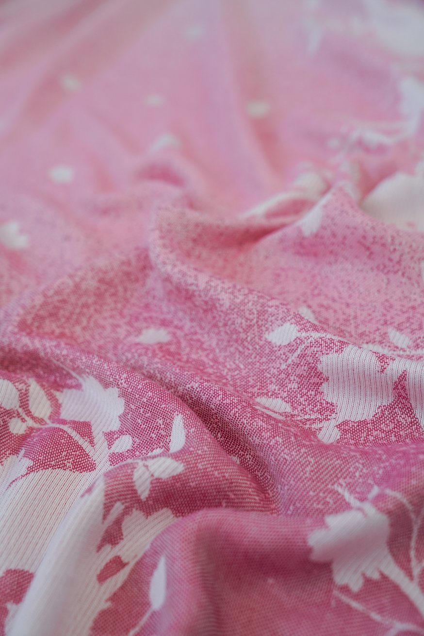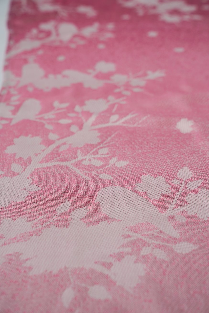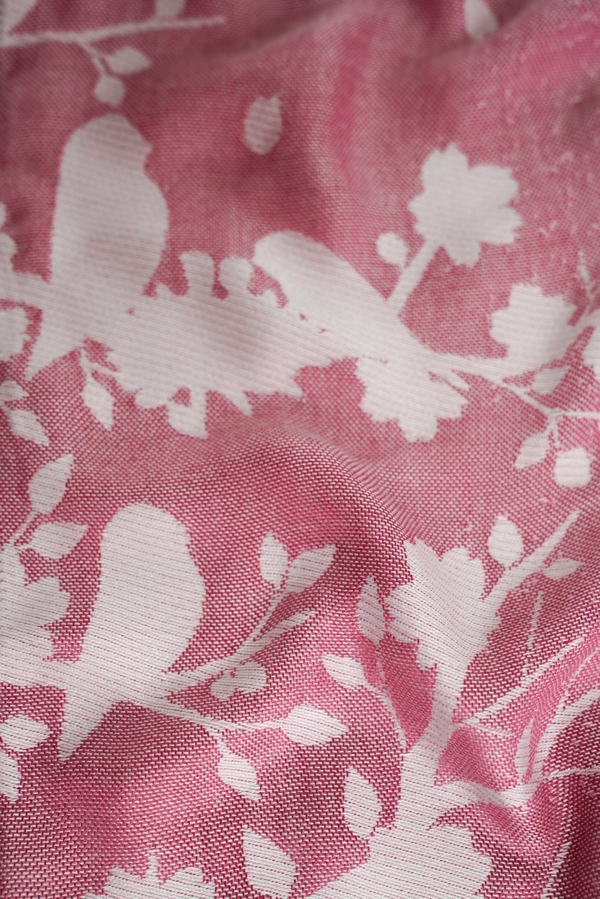 Os pássaros delicados dançam em rosa suave - um design de luz celestial que exala segurança. O tecido parece um beijo na pele.